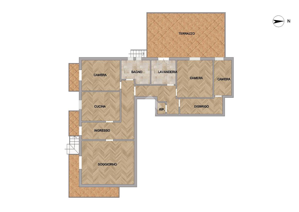 Soggiorno - Cucina – Tre camere – Bagno - Lavanderia - Garage - Balconi - Terrazza - Orto