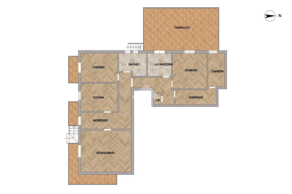 L'immobile si apre su un corridoio d'ingresso che distribuisce perfettamente i vari ambienti.