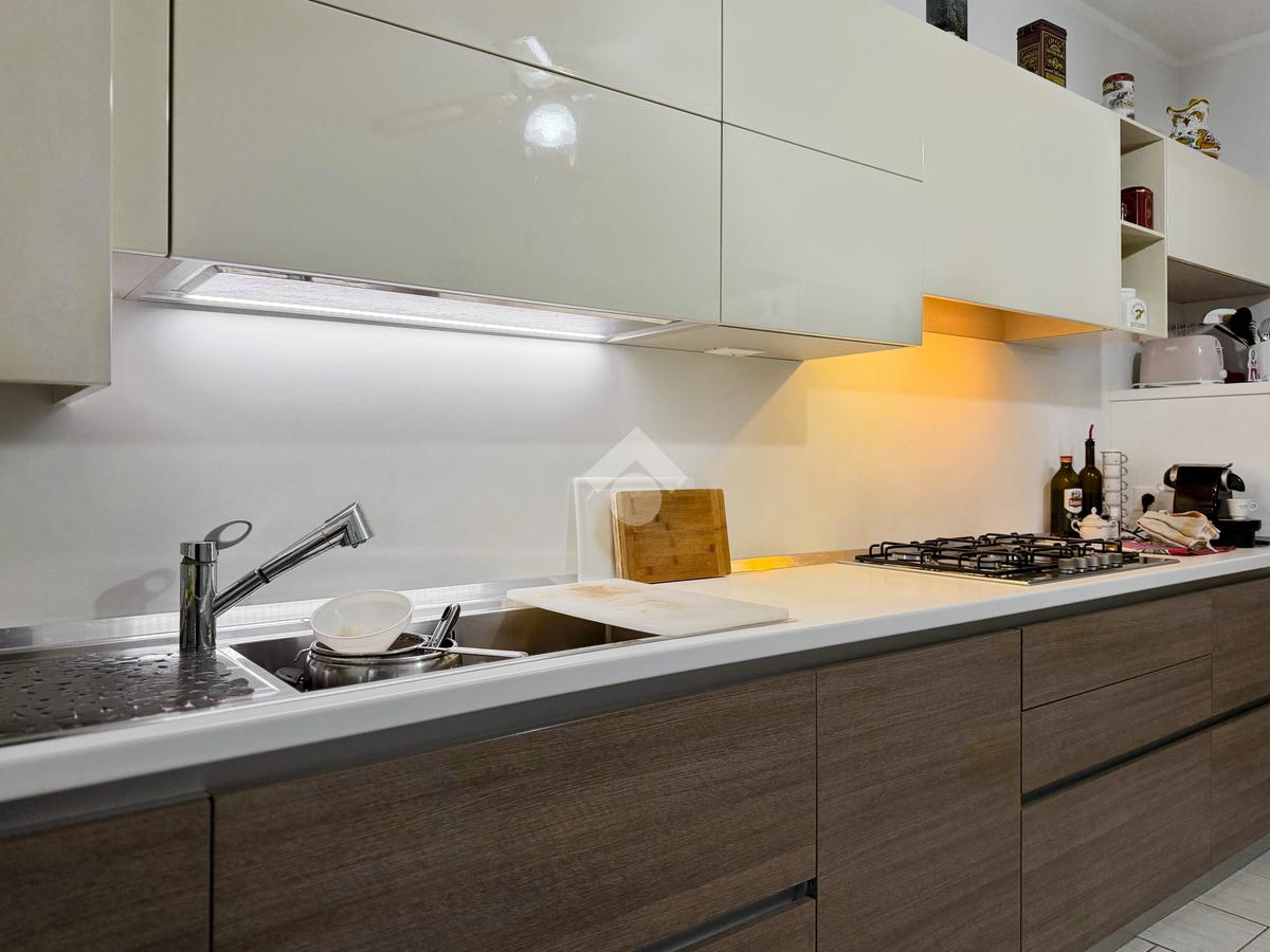 La zona giorno si divide tra un soggiorno e una cucina abitabile separata, entrambi collegati a balconi.